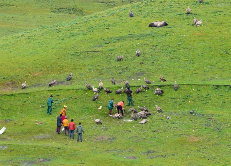 Griffon Vultures are the most common beneficeries of Sky Burials, though hawks and crows also frequently appear.