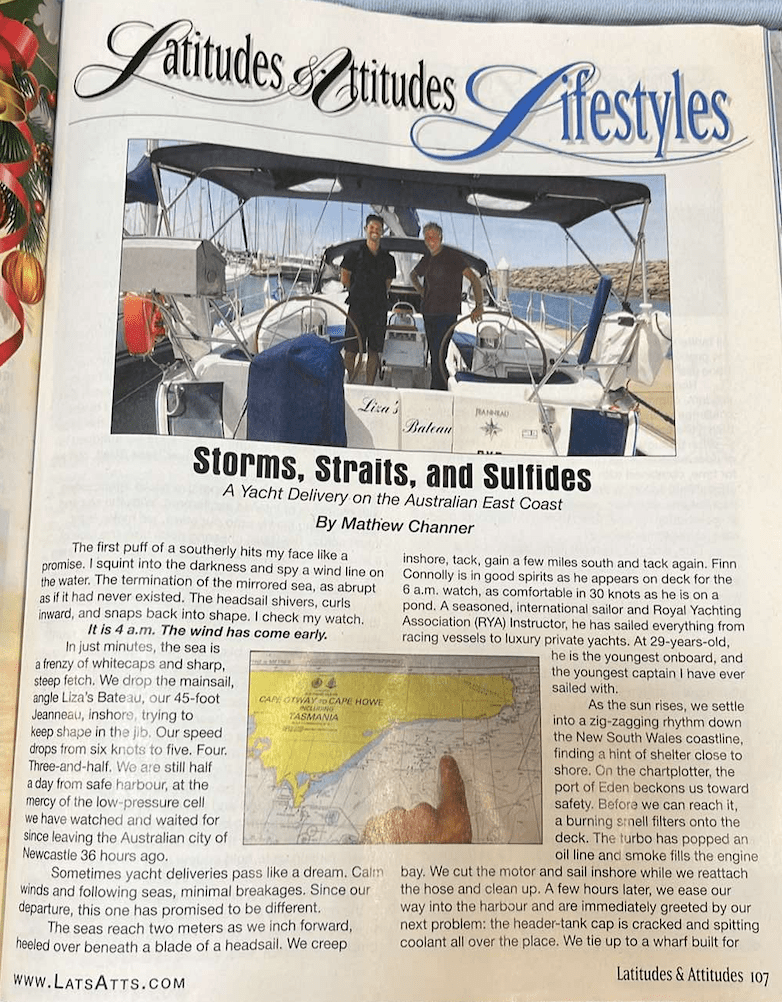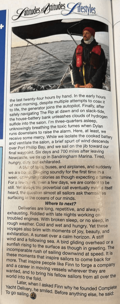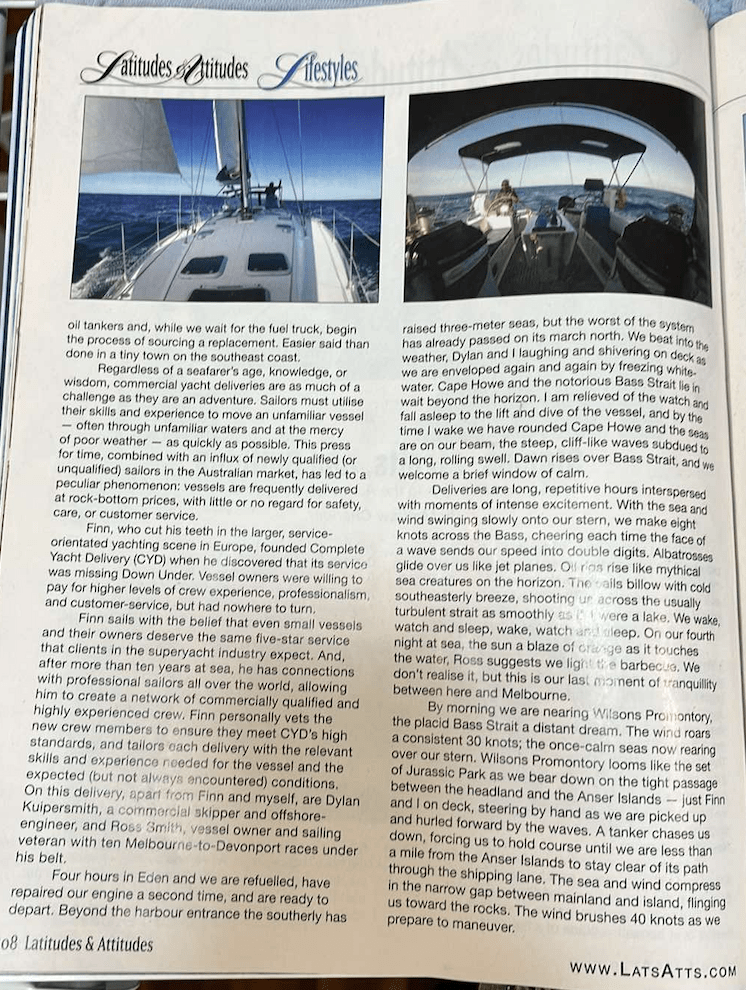 Finn, who cut his teeth in the larger, service-orientated yachting scene in Europe, founded his company Complete Yacht Delivery (CYD) when he discovered what was missing Down Under. Vessel owners were willing to pay for higher levels of crew experience, professionalism, and customer-service, but had nowhere to turn.